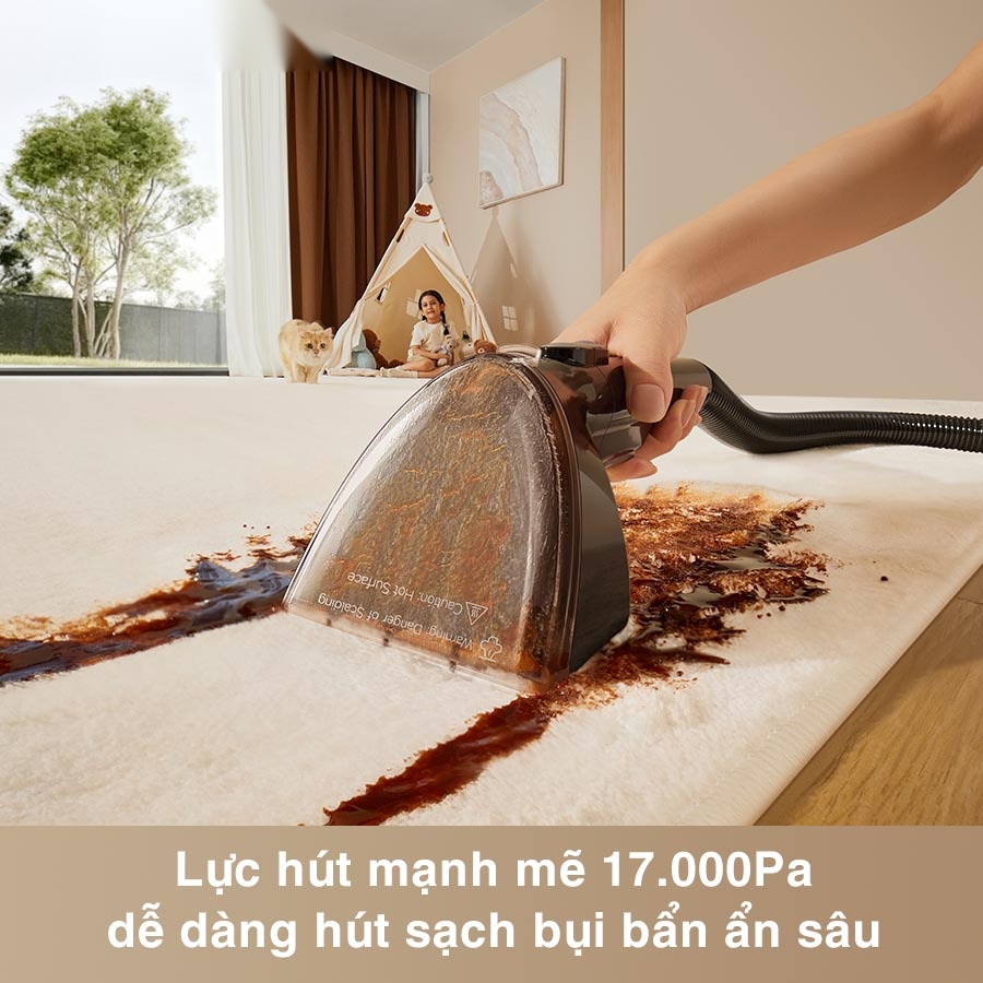 - Lực hút mạnh 17.000Pa làm sạch sâu tận gốc từng sợi vải