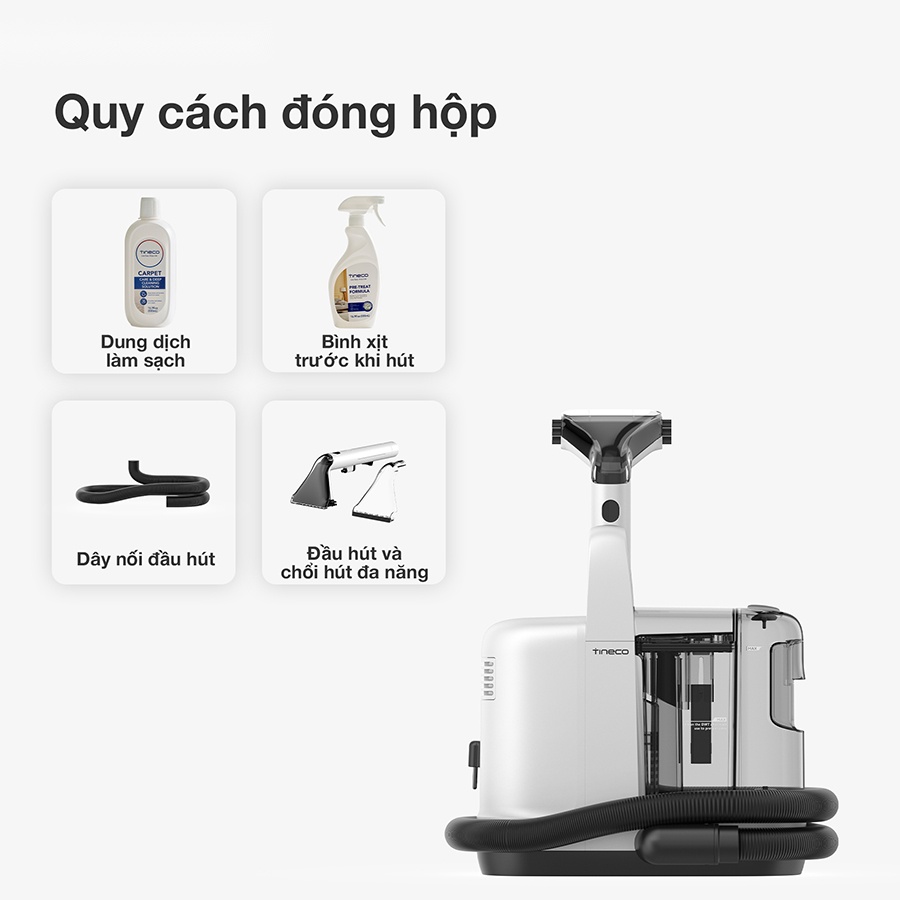 Đi kèm theo máy là dung dịch Pre-treatment độc quyền từ Tineco, được nghiên cứu chuyên biệt để hòa tan và loại bỏ các vết bẩn cứng đầu, kể cả những vết ố lâu ngày hay mảng bám khó xử lý. Đồng thời, dung dịch này còn khử sạch mùi hôi khó chịu, mang lại mùi hương dễ chịu và cảm giác tươi mới cho không gian sống. Nhờ đó, bạn có thể tận hưởng một căn nhà sạch sẽ, thơm mát và đầy thoải mái sau mỗi lần vệ sinh.