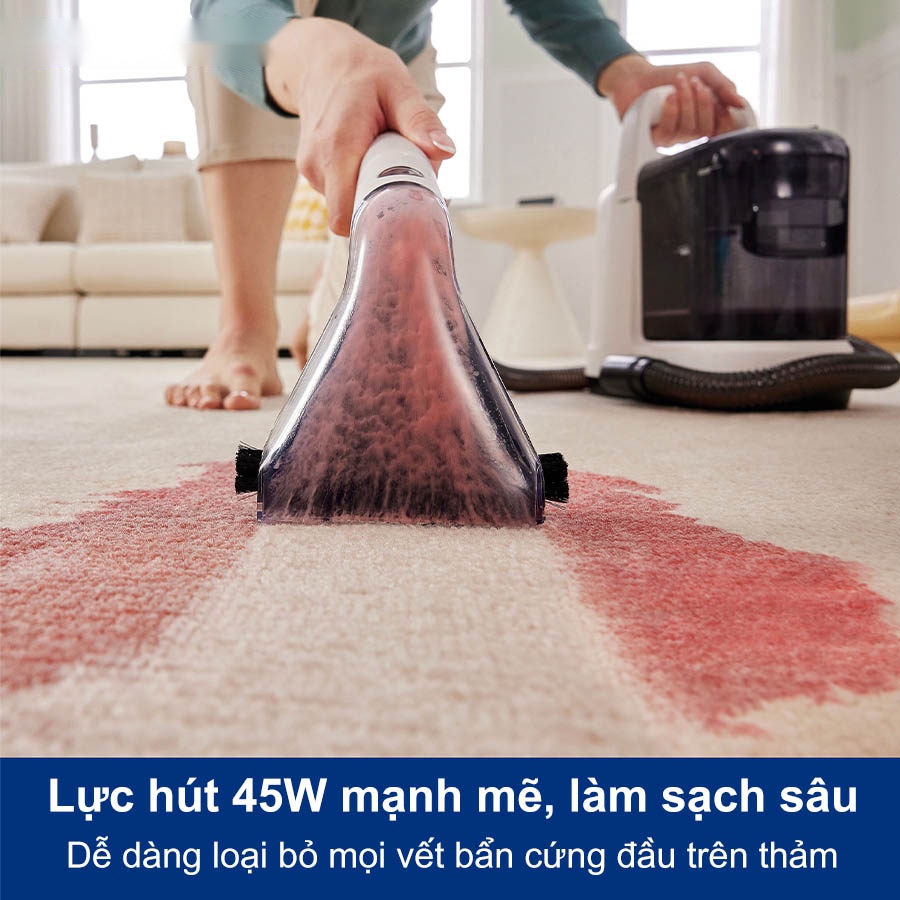 - Làm sạch thảm vượt trội với công suất hút mạnh mẽ 45W