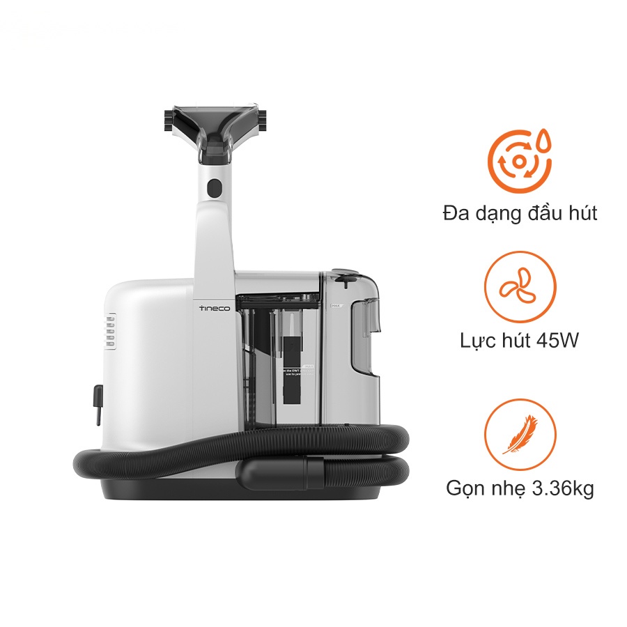 Máy làm sạch thảm Tineco iCarpet Spot là trợ thủ đắc lực giúp bạn xử lý nhanh chóng mọi vết bẩn cứng đầu bám trên thảm mà không cần đến dịch vụ chuyên nghiệp. Sở hữu thiết kế nhỏ gọn, linh hoạt và dễ dàng cất giữ, thiết bị vẫn đảm bảo hiệu suất mạnh mẽ với công suất hút lên tới 45W, đánh bật bụi bẩn, bùn đất hay vết đổ trên thảm, sofa, cầu thang và nhiều bề mặt khác. Đi kèm đầu hút kép chuyên dụng cho cả bề mặt mềm và cứng cùng bình chứa nước 2 trong 1 dung tích lớn, Tineco iCarpet Spot mang đến trải nghiệm làm sạch thảm hiệu quả, tiết kiệm thời gian và công sức cho mọi gia đình.