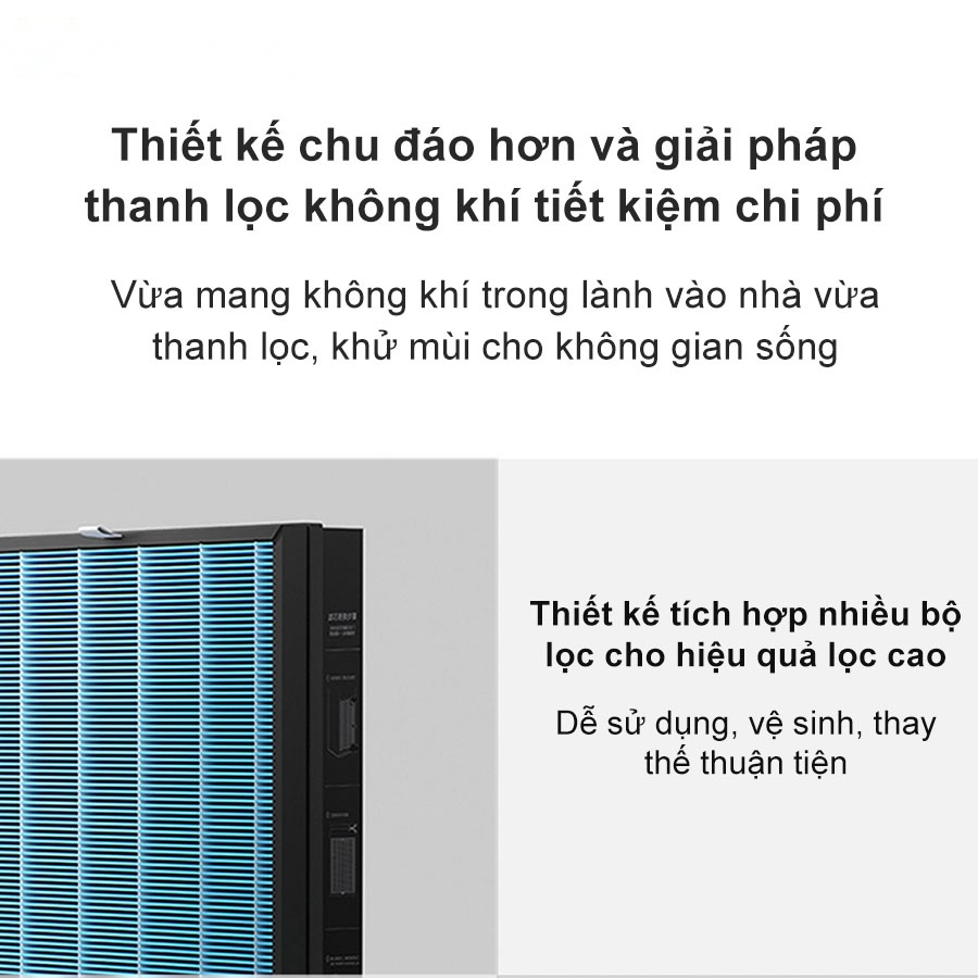- Hệ thống lọc 3 tầng với lưới lọc kim loại, bộ lọc MERV12, bộ lọc HEPA13