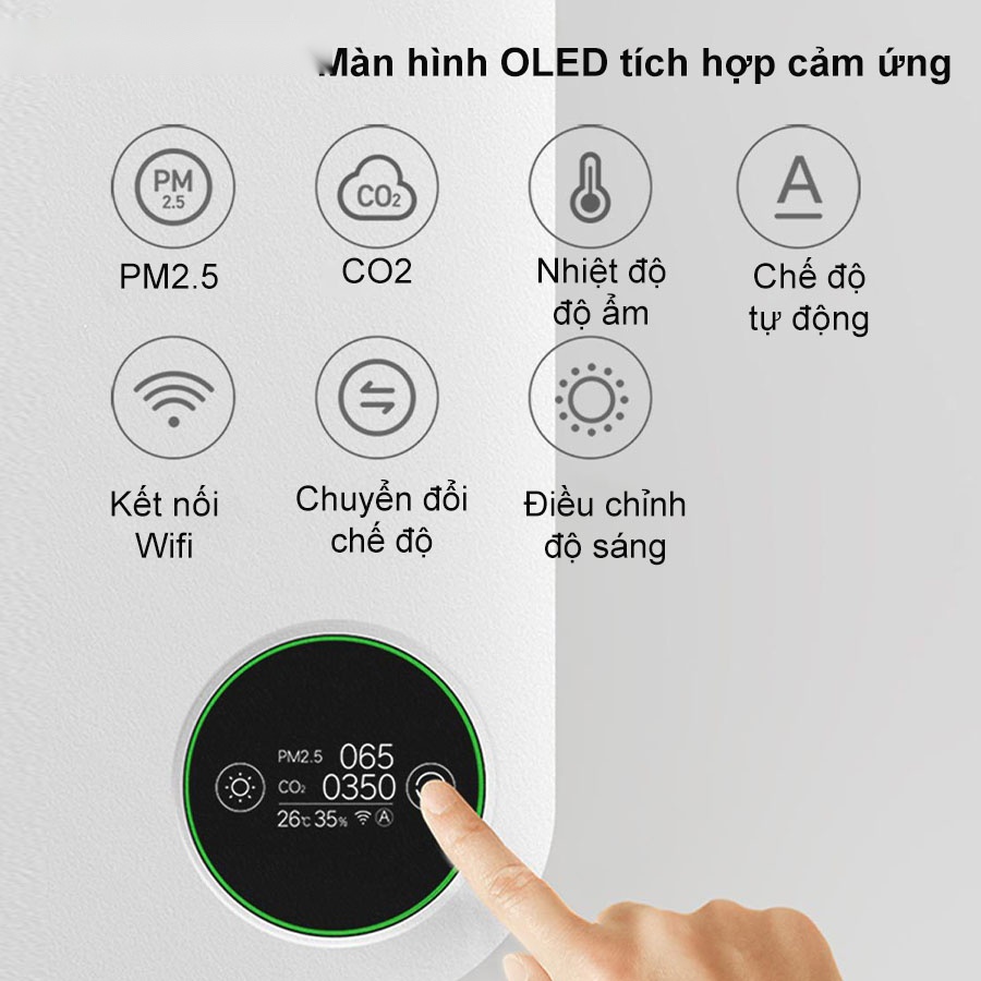 Máy lấy gió ngoài Smartmi Purifier mang một cải tiến đột phá trong thiết kế, với màn hình OLED cảm ứng hiện đại. Việc điều chỉnh không khí trong nhà trở nên dễ dàng hơn bao giờ hết chỉ bằng một cú chạm nhẹ vào màn hình, đồng thời màn hình này cũng chính là trung tâm hiển thị dữ liệu quan trọng về môi trường không khí của gia đình bạn.
