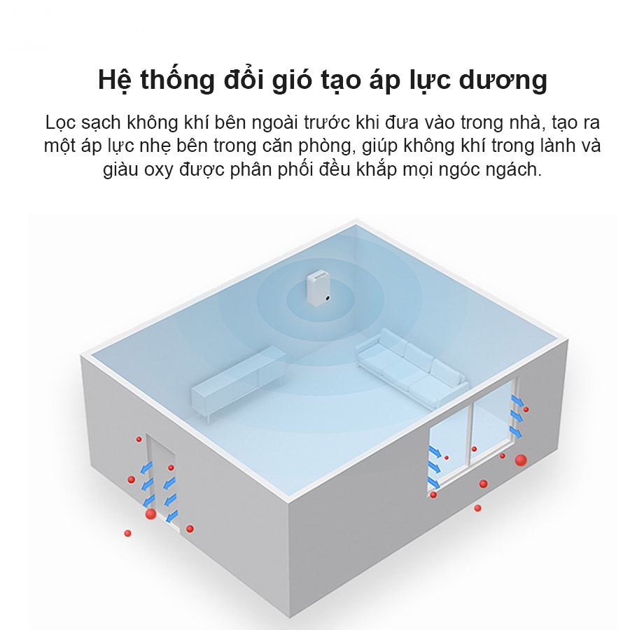 - Hệ thống đổi gió tạo áp lực dương, tăng cường lượng oxy trong không khí