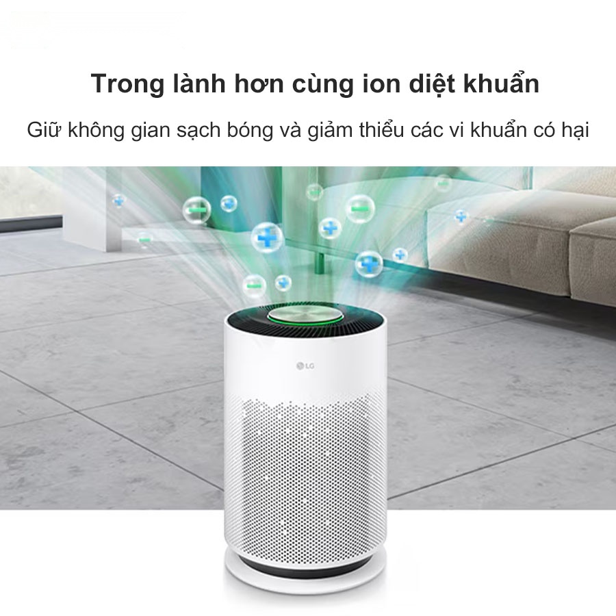Một trong những công nghệ nổi bật của máy lọc không khí LG PuriCare 360 Hit là ionizer, giúp làm giảm vi khuẩn có hại trong không khí. Hệ thống này hoạt động bằng cách phát ra các ion âm, loại bỏ những tác nhân gây hại một cách hiệu quả. Nhờ đó, không chỉ không khí được lọc sạch, mà gia đình bạn cũng được bảo vệ tối ưu, mang đến không gian sống khỏe mạnh và an toàn.