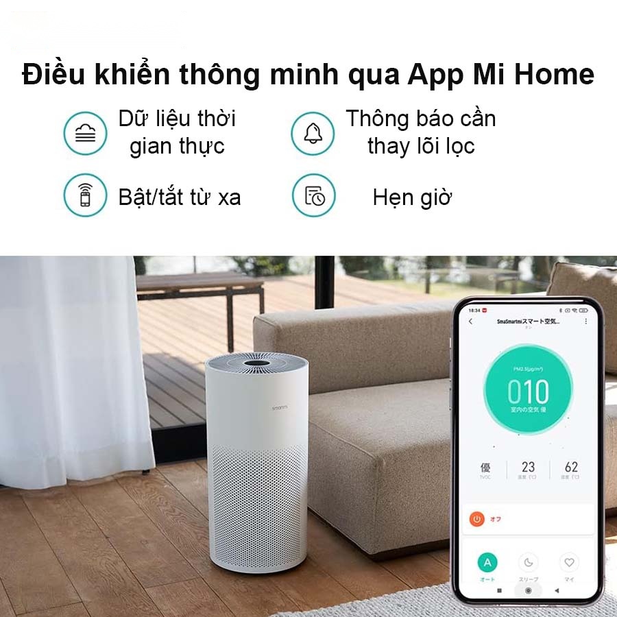 Khi bạn sử dụng app Mi để tùy chỉnh chế độ cho Máy Lọc Không Khí Smartmi Air Purifier bạn còn có thể dễ dàng kiểm soát chất lượng không khí trong nhà bất cứ khi nào và bất cứ nơi đâu. Ứng dụng có thể gửi thông báo, giúp bạn lên lịch, theo dõi, giám sát,…chất lượng không khí cho căn phòng của bạn.