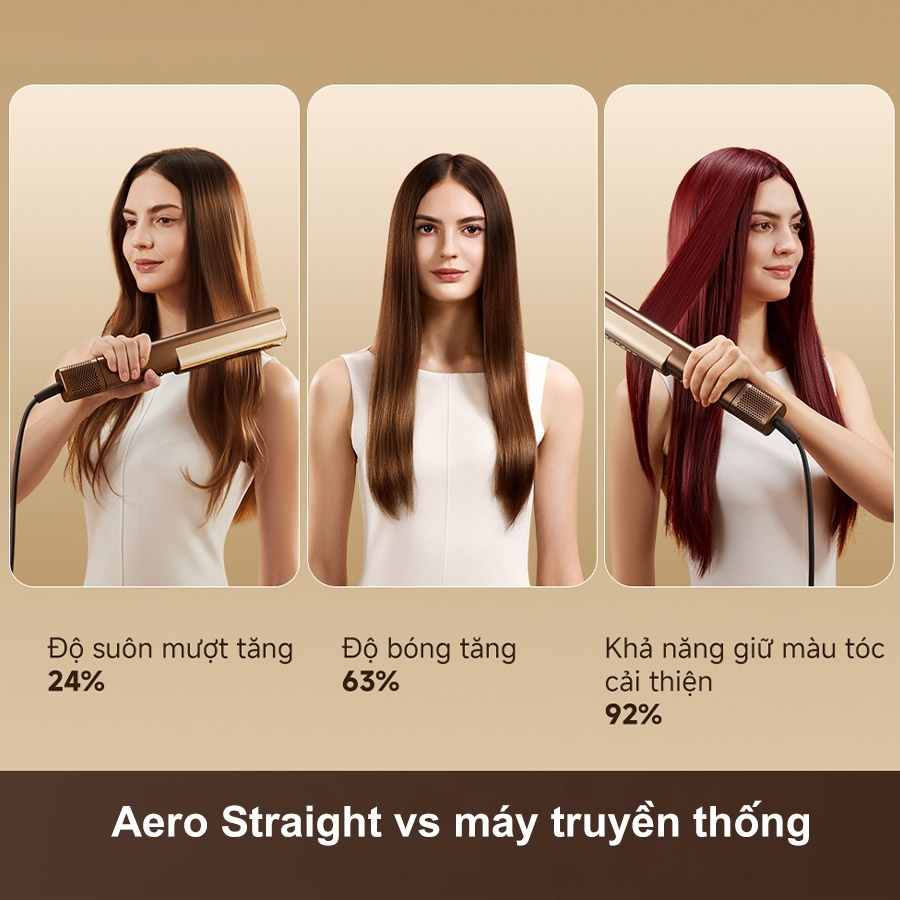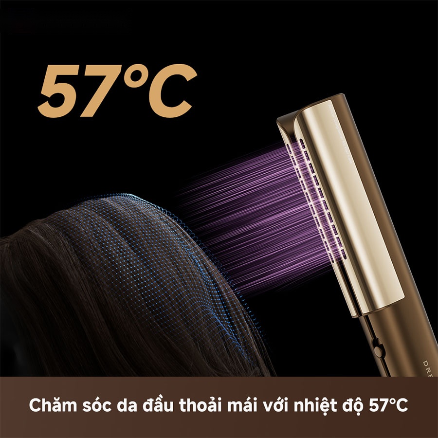 Không cần bản kẹp nhiệt, Dreame Aero Straight sử dụng hoàn toàn luồng khí tốc độ cao để duỗi thẳng tóc, loại bỏ nguy cơ hư tổn do nhiệt. Một lần lướt nhẹ cũng đủ để mái tóc thẳng mượt, giảm căng kéo và bảo vệ da đầu nhờ chế độ Root-Care, giúp nâng gốc tóc nhưng vẫn giữ cảm giác dễ chịu. Kết quả thử nghiệm cho thấy: Độ mượt tăng 24%, độ sáng bóng cải thiện 63% và khả năng giữ màu tốt hơn 92%.