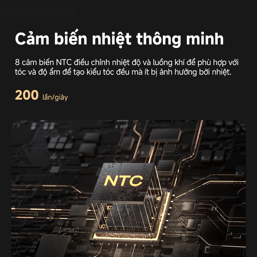 Máy sấy duỗi tóc Dreame Aero Straight tích hợp 8 cảm biến NTC theo dõi nhiệt độ tới 200 lần mỗi giây, công nghệ Sense IQ giúp kiểm soát nhiệt và luồng khí theo thời gian thực. Hệ thống tự động điều chỉnh tùy theo loại tóc, độ ẩm và khoảng cách, đảm bảo tóc được làm mượt đồng đều mà vẫn giảm thiểu tối đa tác động nhiệt lâu dài.