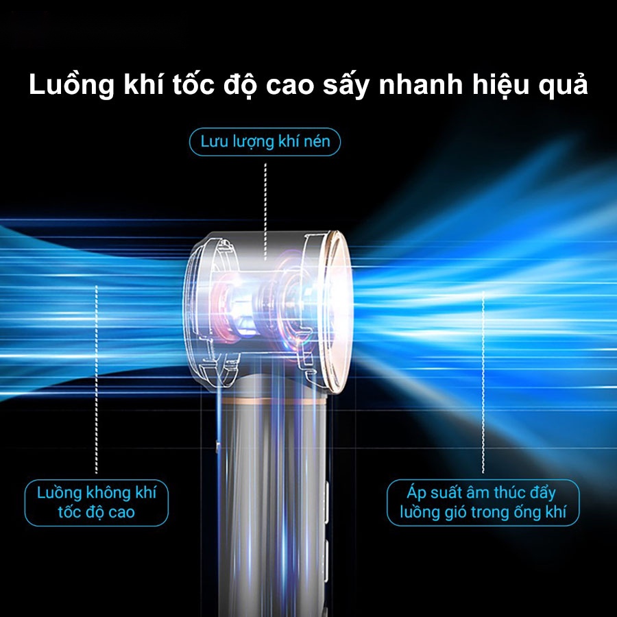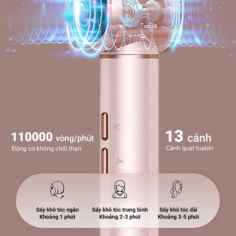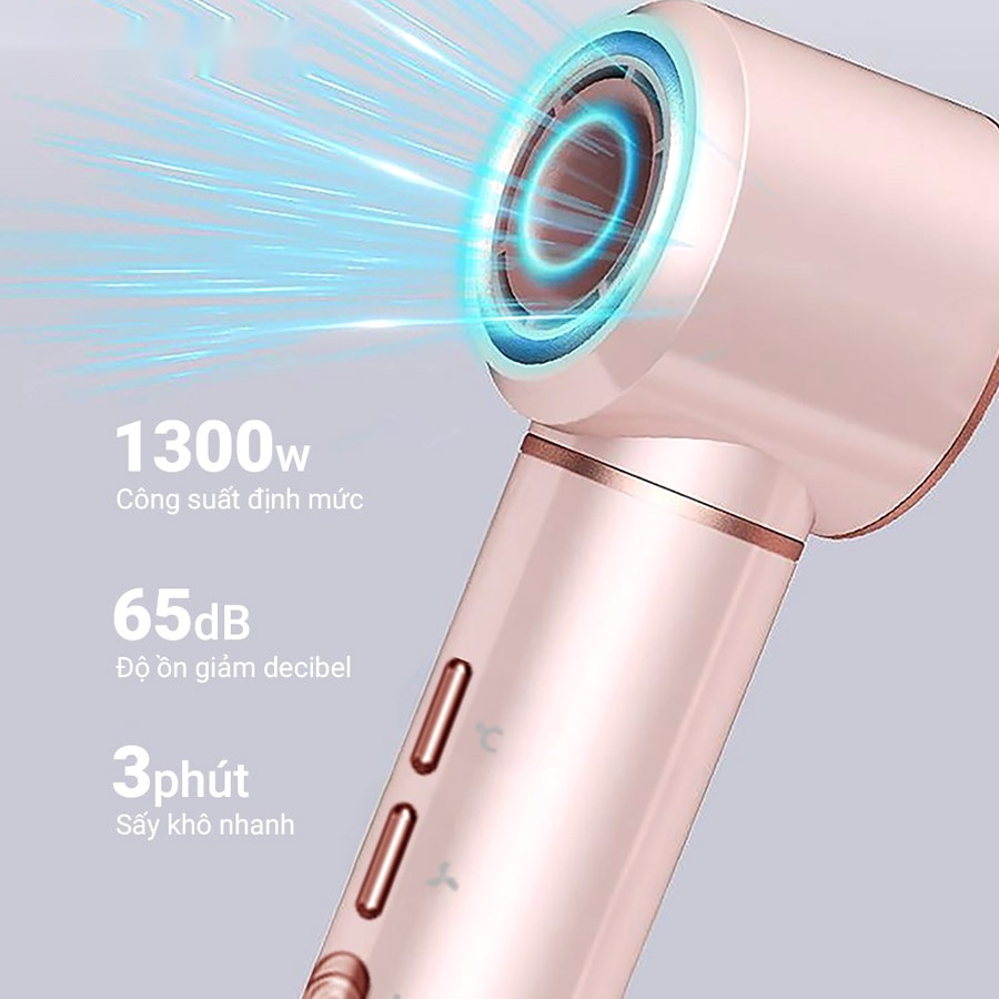 - Công suất 1300W, động cơ 110.000 vòng/phút sấy khô nhanh 1–3 phút