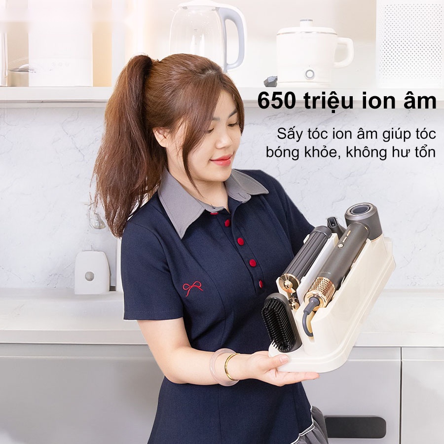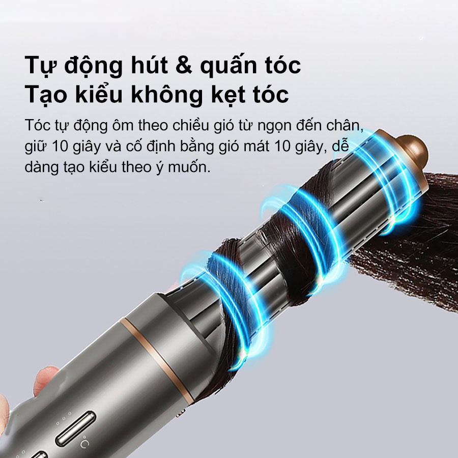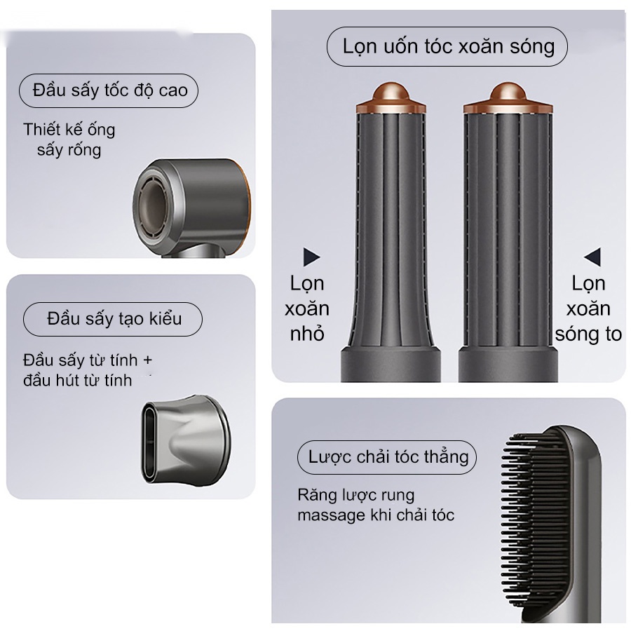 - 5 đầu sấy đa năng tạo kiểu suôn thẳng, uốn xoăn, tạo phồng