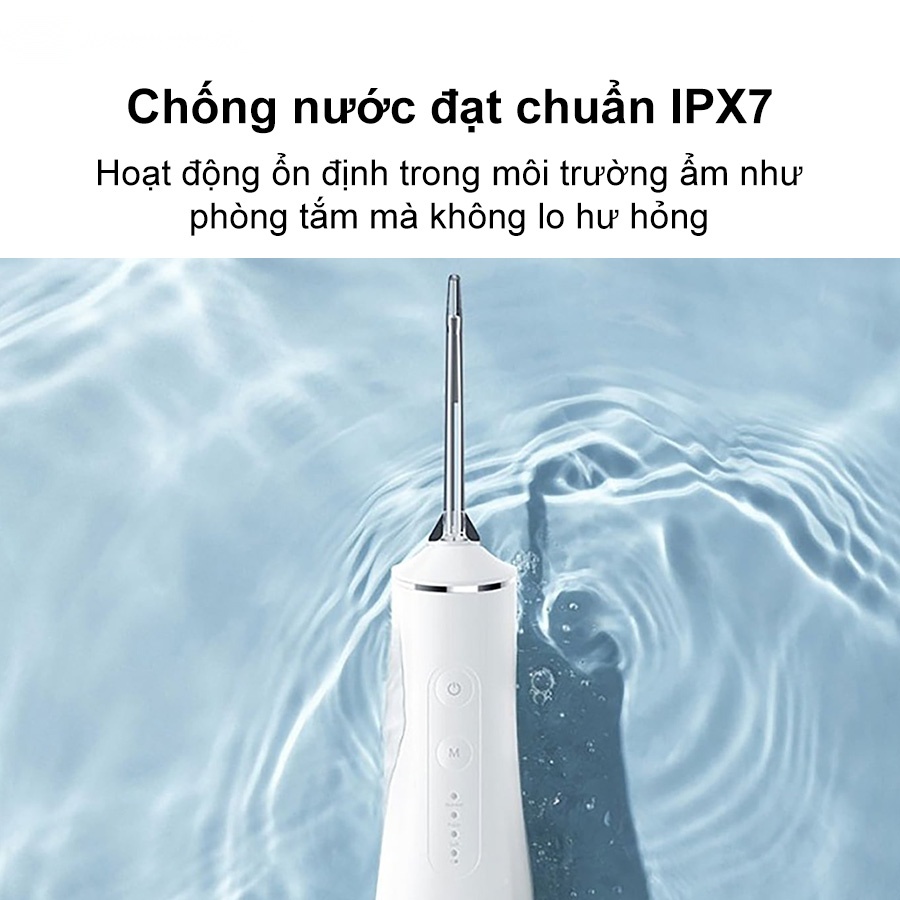 Đạt chuẩn chống nước IPX7, tăm nước Lumias LWF-180W hoạt động ổn định trong môi trường ẩm như phòng tắm mà không lo hư hỏng mang lại trải nghiệm vệ sinh răng miệng tiện nghi, đồng thời đảm bảo độ bền vượt trội cho thiết bị.