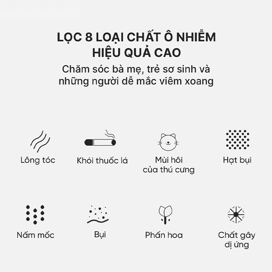 - Công nghệ lọc không khí: Màng lọc 5 lớp AEC loại bỏ bụi, phấn hoa, mùi hôi.