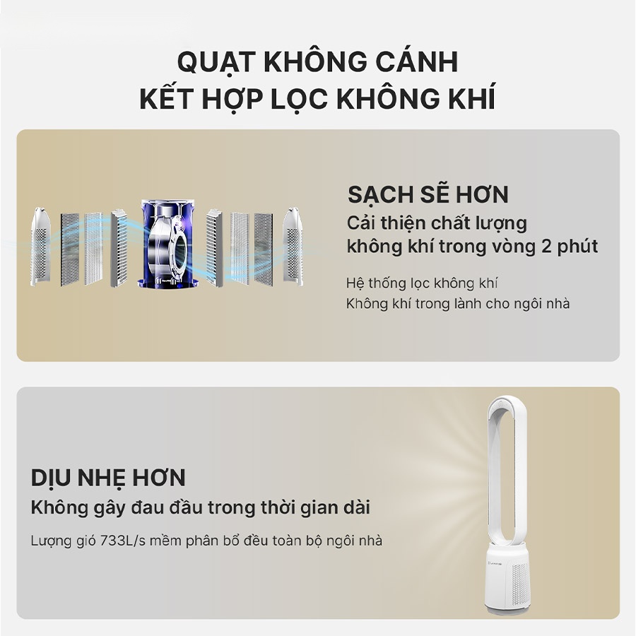 Quạt không cánh Lumias T08 không chỉ là một chiếc quạt, mà còn là một thiết bị lọc không khí hiệu quả. Với công nghệ lọc 5 lớp AEC, quạt loại bỏ các chất ô nhiễm, bụi, phấn hoa, và mùi hôi, cải thiện chất lượng không khí trong nhà. Đây là lựa chọn lý tưởng cho gia đình có trẻ sơ sinh hoặc người mắc các bệnh về đường hô hấp.