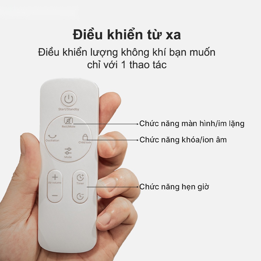 - Ba chế độ gió linh hoạt: Tùy chọn gió tự nhiên, chuyển đổi tần số, và ngủ yên tĩnh.