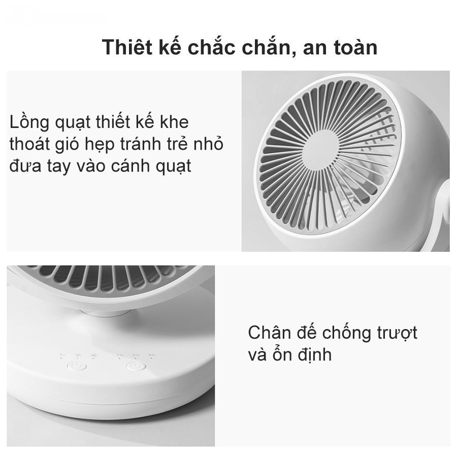 Điều này giúp tránh cảm giác mệt mỏi và nhức đầu do gió thổi trực tiếp vào cơ thể, tạo điều kiện tốt cho hiệu suất học tập và làm việc của bạn. Bên cạnh đó, quạt còn có chế độ hẹn giờ tắt máy tuỳ chỉnh lên đến 6 giờ, giúp bạn dễ dàng kiểm soát được khoảng thời gian làm mát và tiết kiệm năng lượng tối ưu.