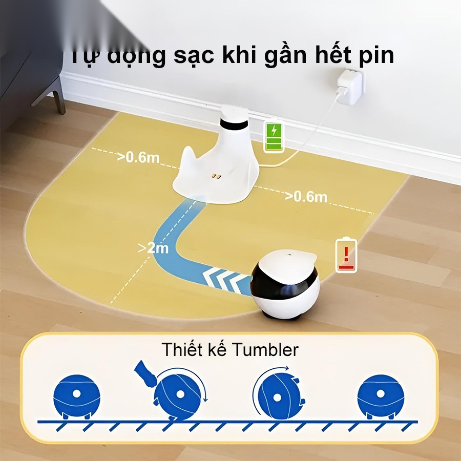 Khi sắp hết pin, robot camera giữ nhà Enabot EBO SE sẽ tự động quay về đế sạc để nạp năng lượng mà không cần can thiệp từ người dùng. Điều này giúp đảm bảo EBO SE luôn duy trì hoạt động liên tục, nhất là trong các tình huống giám sát kéo dài. Tính năng tự động sạc giúp người dùng yên tâm hơn khi vắng nhà nhiều giờ.