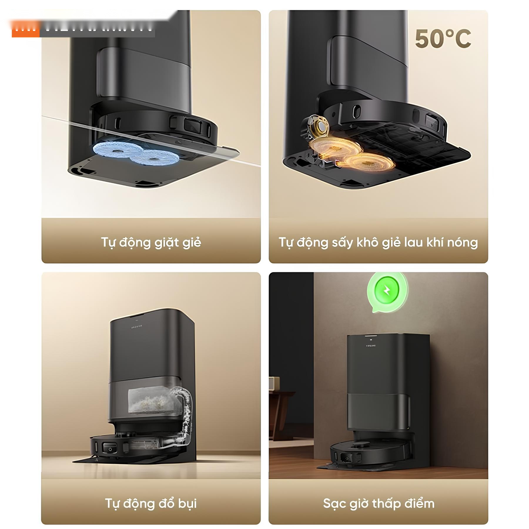 - Trạm sạc đa chức năng PowerDock: Tích hợp khay giặt tự làm sạch AceClean và khả năng tự động đổ bụi