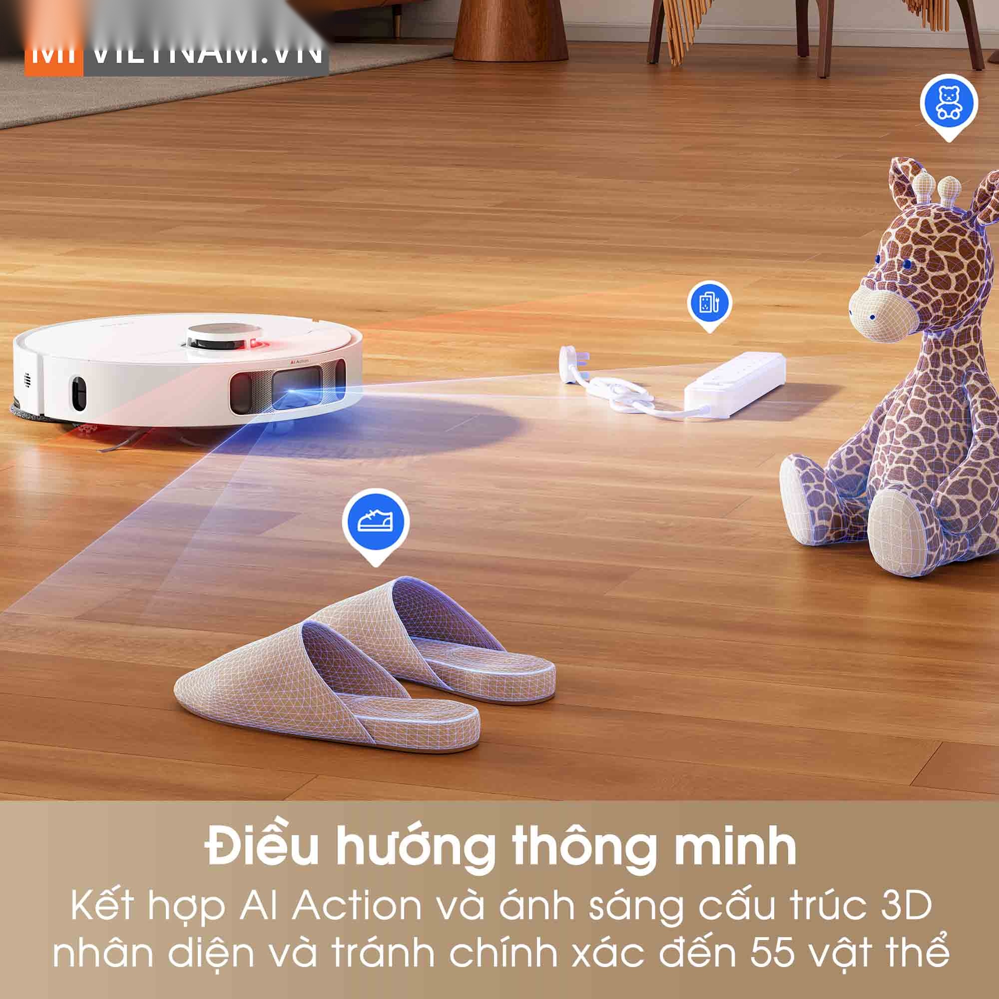 Cùng với sự hỗ trợ của trí tuệ nhân tạo và ánh sáng cấu trúc 3D, Dreame L10s Pro Ultra có khả năng xác định và tránh né đến hơn 55 loại vật thể, như là giày dép, dây cáp và những loại vật dụng khác. Người dùng có thể hoàn toàn yên tâm rằng robot sẽ không gây ra bất cứ hư tổn nào cho đồ đạc trong nhà của bạn trong quá trình hoạt động. Bên cạnh đó, camera AI này còn cho khả năng theo dõi thời gian thực và đàm thoại 2 chiều vô cùng tiện lợi.