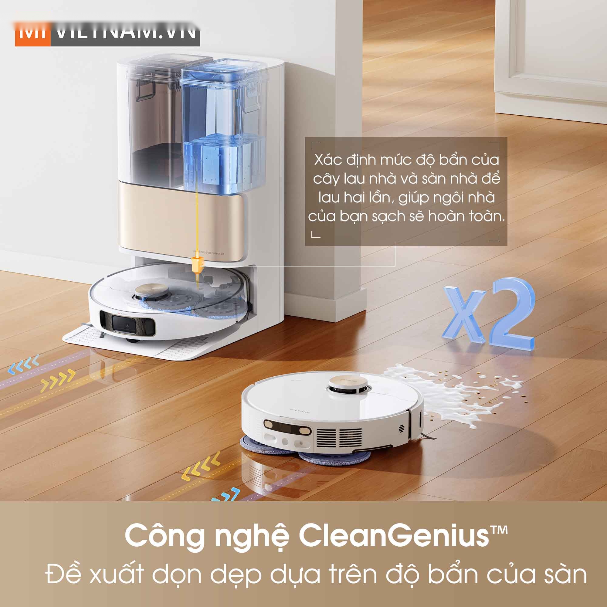 Công nghệ CleanGenius™ với cảm biến thông minh sẽ dễ dàng xác định được mức độ bẩn của từng khu vực trong nhà thông qua việc đo lường độ bẩn nước giặt giẻ. Với công nghệ này, Dreame L10s Pro Ultra sẽ hoạt động theo quá trình làm sạch, giặt giẻ, làm sạch lại những khu vực bẩn để đảm bảo cho sàn nhà của bạn hoàn toàn sạch sẽ.