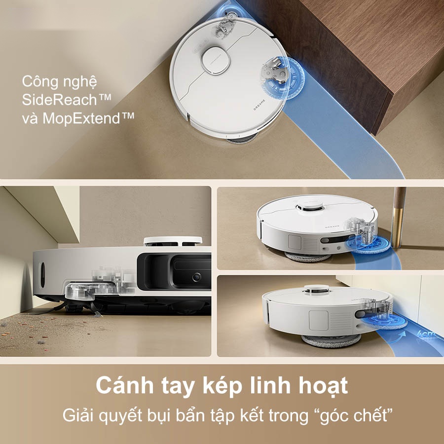 Nhờ công nghệ SideReach Vacuuming và MopExtend RoboSwing tiên tiến, Dreame L10s Ultra Gen 3 có thể vươn cánh tay robot linh hoạt để tiếp cận những vị trí khó chạm tới như góc tường, khe bàn ghế hay mép chân tường cong. Cụ thể, robot đạt 100% độ phủ góc và 99% độ phủ cạnh, đảm bảo không bỏ sót bất kỳ vị trí nào.