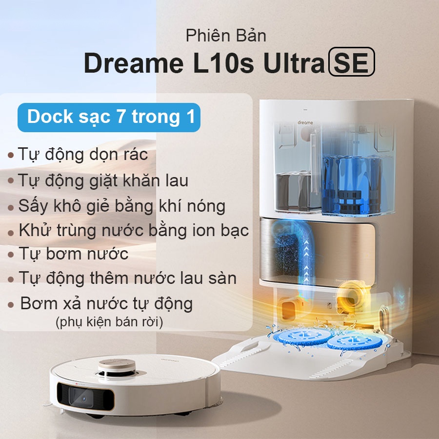 (*) Lưu ý: bộ bơm xả cho Dreame L10s Ultra SE là phụ kiện mua rời, không kèm trong sản phẩm