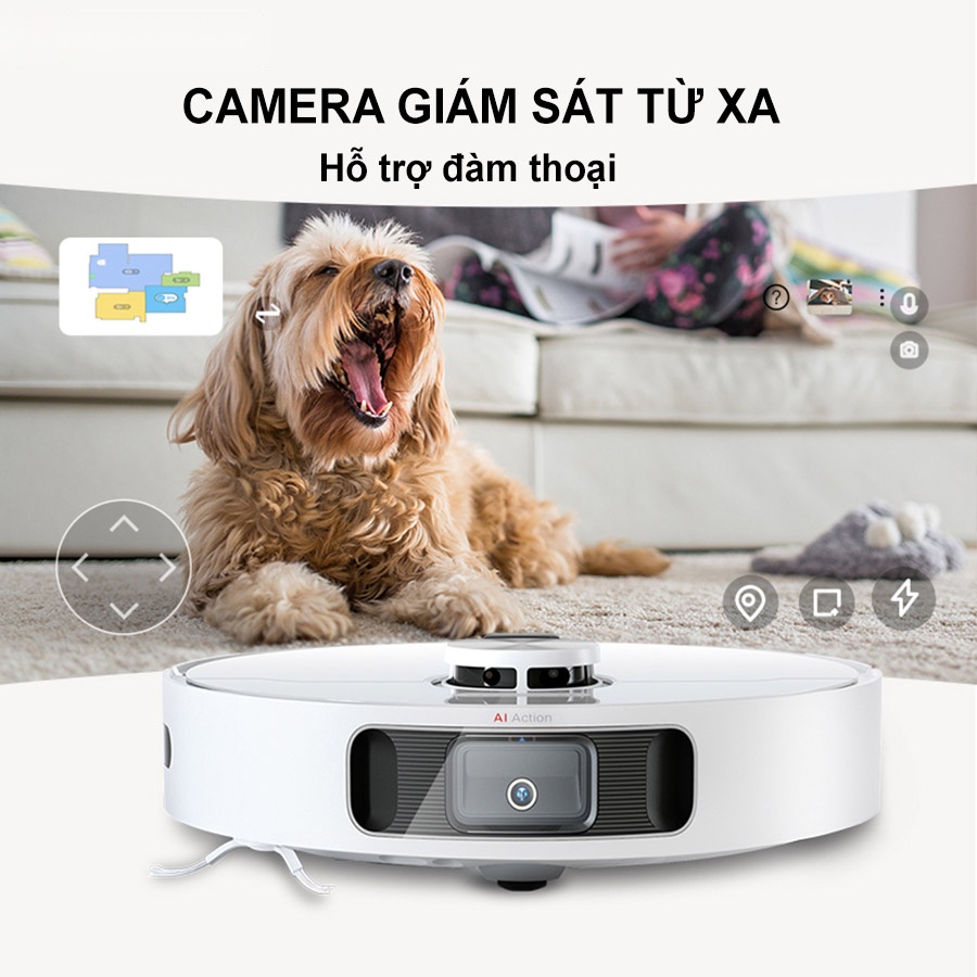 - Hệ thống camera Ai Action : cho phép robot tránh né đồ nội thất trong nhà một cách dễ dàng và chính xác. Ngoài ra hệ thống còn có khả năng tạo bản đồ ứng dụng 3D, giúp bạn có thể theo dõi giám sát quá trình hoạt động của robot.