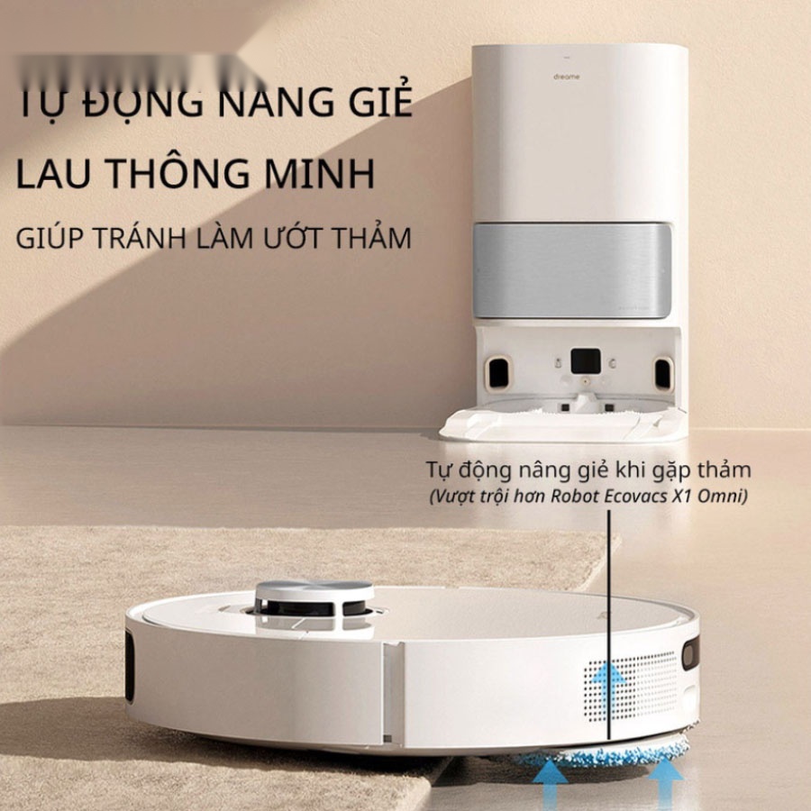 Dreame L10S Ultra được trang bị khả năng nhận diện thảm thông minh, chức năng này sẽ tự tăng lực hút lên tối đa ngay khi gặp thảm, giúp robot hút sạch các hạt bụi mịn bám sâu và xen kẽ giữa các sợi thảm. Điều này giúp cho việc vệ sinh thảm được hiệu quả hơn. Đồng thời, phần đế lau sẽ được nâng lên để tránh làm ướt thảm, giúp thảm luôn được khô ráo và sạch sẽ.