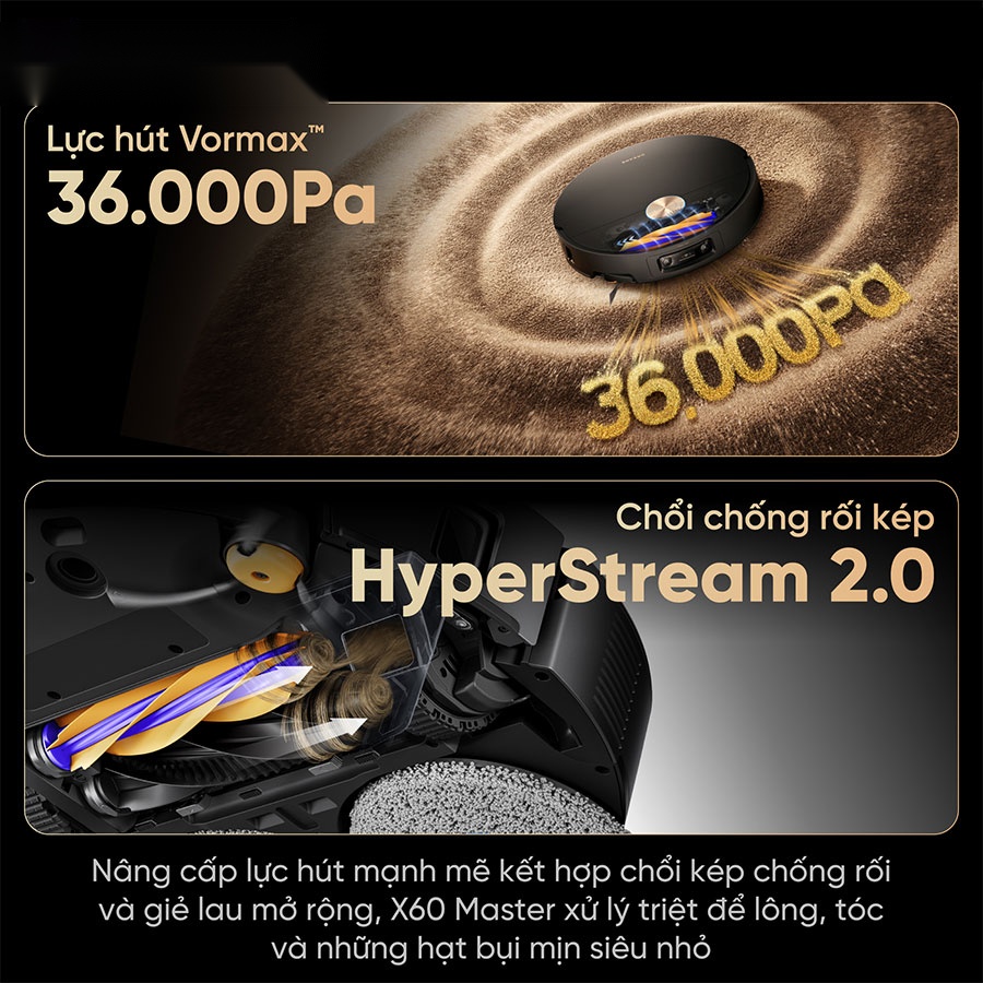 - Lực hút Vormax 36.000Pa, làm sạch mạnh mẽ.