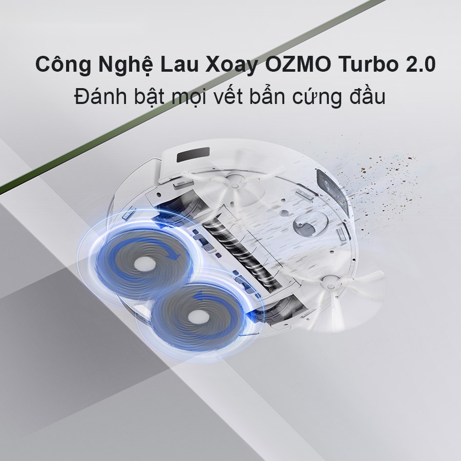 Robot hút bụi lau nhà Ecovacs Deebot T10 Omni được trang bị công nghệ lau xoay Ozmo™ Turbo 2.0 cùng chổi xoay 360 độ với tốc độ nhanh và hiệu quả hơn, đạt tần số rung lên tới 180 vòng/phút. Kết hợp với cặp chổi lau được cải tiến siêu dày 3 lớp, mật độ sợi vải và diện tích giẻ lớn đảm bảo cho Deebot T10 Omni khả năng đánh bật sạch 10 loại vết bẩn cứng đầu và loại bỏ tới 99.99% vết bẩn. Đồng thời vừa lau xoay vừa liên tục ép xuống sàn với áp lực lớn để có thể làm sạch những vết bẩn cứng đầu như cafe, thức ăn bám bẩn lâu ngày,…