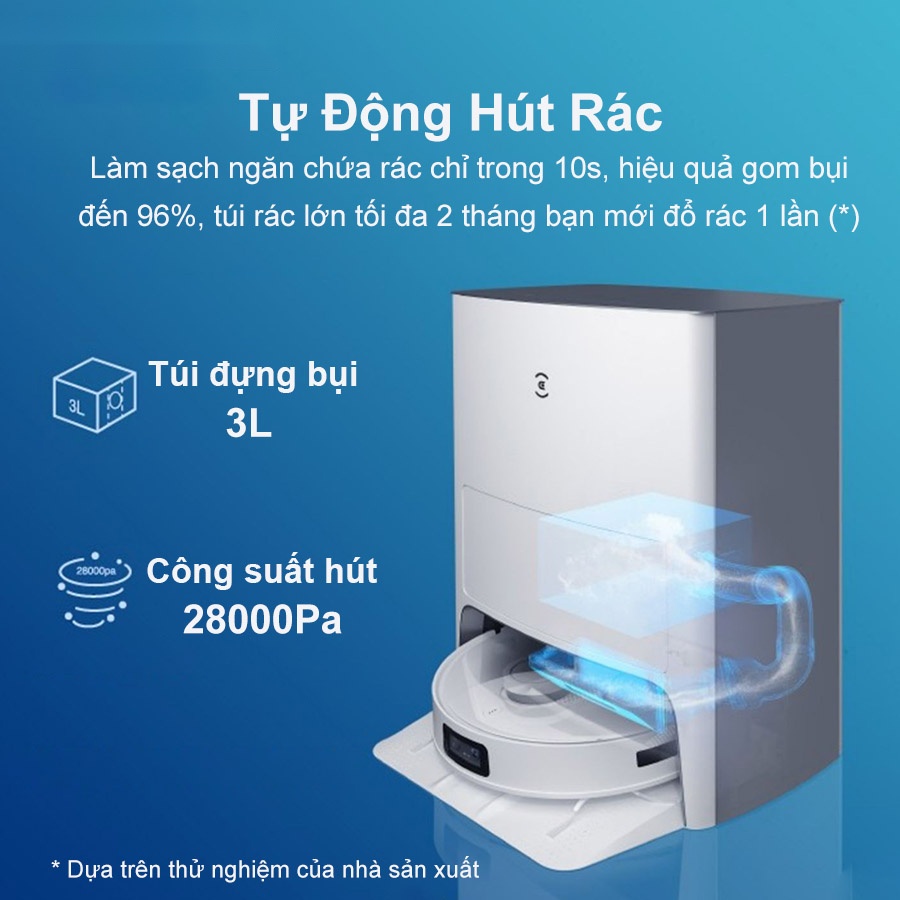 Sau khi kết thúc quá trình làm sạch, robot lau nhà Deebot T10 Omni sẽ quay trở lại dock sạc để tiến hành làm sạch hộp bụi của robot. Với công suất hút mạnh mẽ lên đến 28000Pa cho khả năng làm trống hộp bụi vô cùng ấn tượng. Deebot T10 Omni trang bị túi đựng bụi với dung tích 3L, nhờ đó người dùng có thể sử dụng tối đa trong 60 ngày mà không cần đổ rác.