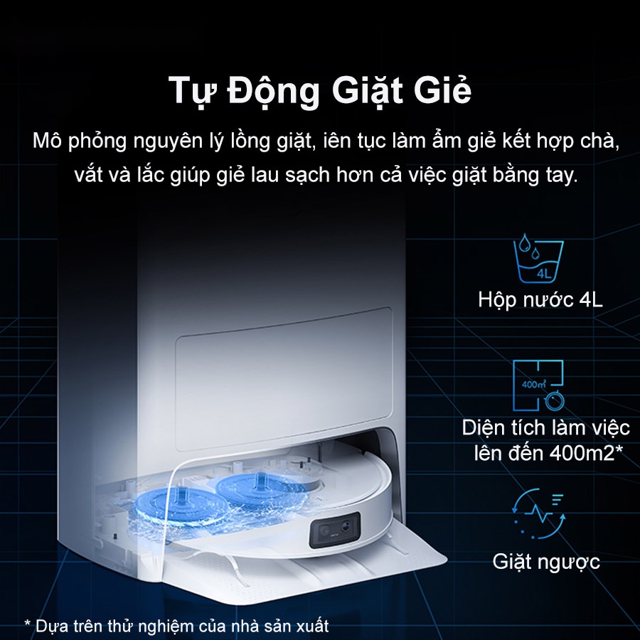 Dock sạc của robot Deebot T10 Omni trang bị hệ thống nước hiện đại, trong đó có một hộp nước sạch và một hộp nước bẩn riêng biệt. Nhờ vậy mà robot luôn có đầy đủ nước sạch để giặt khăn và phải rất lâu người dùng mới cần thêm nước sạch cho trạm. Với cơ chế giặt giẻ mô phỏng theo nguyên lý lồng giặt, giẻ lau được phun nước, chà, lắc và vắt giúp cho giẻ lau sạch hơn so với việc giặt bằng tay. Mà quá trình này chỉ mất 90s, nhanh chóng trả lại khăn lau sạch sẽ cho lần dọn dẹp tiếp theo.
