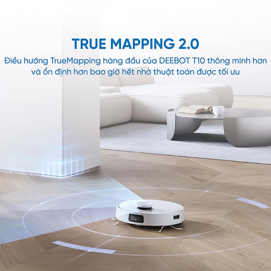 Ecovacs đã mang công nghệ điều hướng ToF – công nghệ được NASA sử dụng lên sản phẩm Deebot T10 Turbo của mình. Với hệ thống ToF TrueMapping 2.0, T10 Turbo có khả năng quét và xác định kích thước chính xác của các vật cản, tạo ra bản đồ ngôi nhà 3D chi tiết, trực quan.