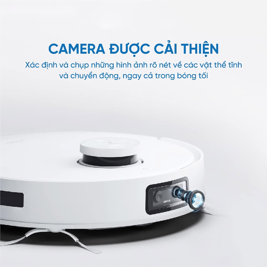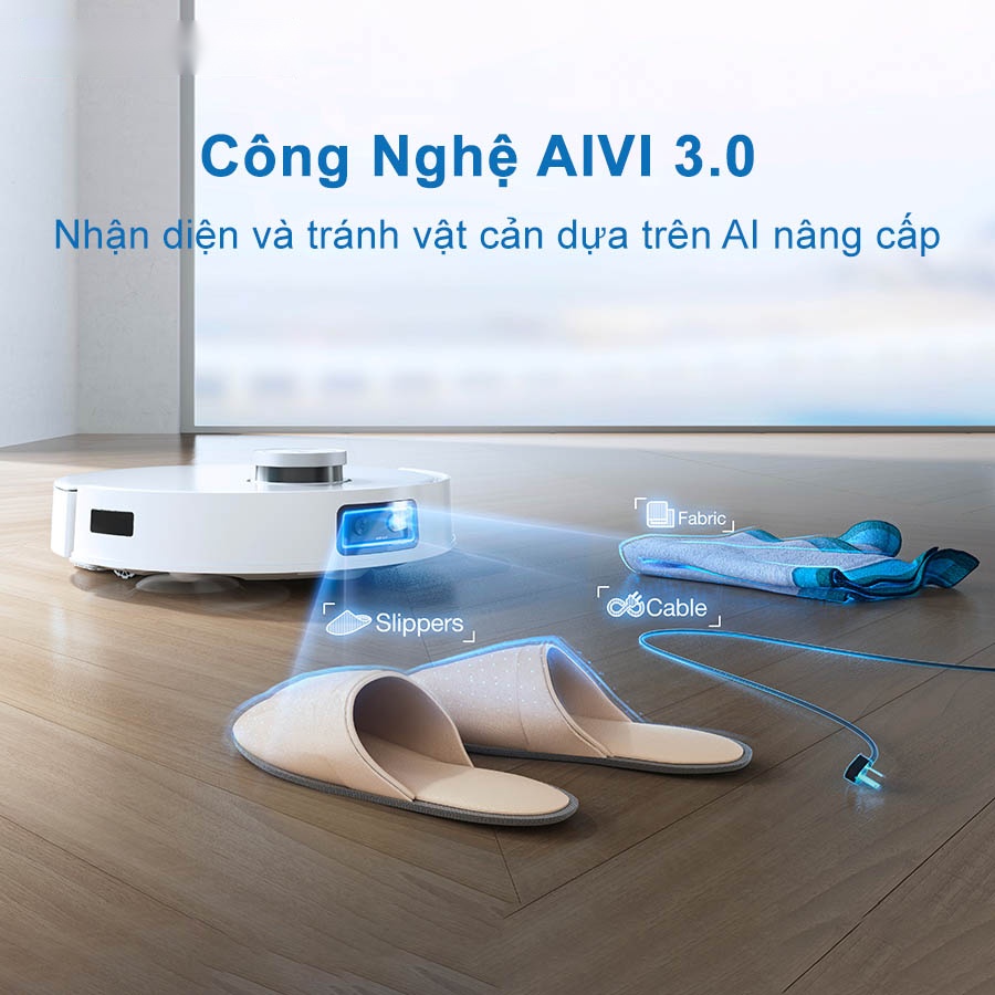 Robot Ecovacs Deebot T10 Turbo được trang bị công nghệ Camera AIVI AI tiên tiến thế hệ thứ 3. Hệ thống camera này cho phép robot nhận biết và tránh các vật cản trên đường đi chính xác và nhanh chóng. Với hệ thống này, khả năng điều hướng và di chuyển của robot được nâng cao một cách đáng kể, gia tăng hiệu suất làm việc. Ecovacs Deebot T10 Turbo có thể dễ dàng nhận diện và né tránh các chướng ngại vật như: tất, dày dép, vải mềm, ghế, thảm trải sàn, thùng rác, giường, bàn cafe, nhà vệ sinh, tủ tivi, bàn ghế ăn, ghế sofa, vật nuôi,…