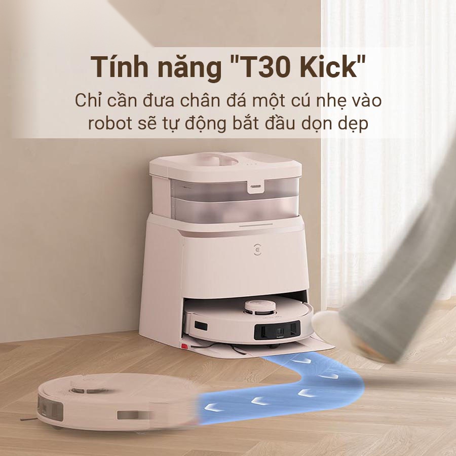 Robot hút bụi lau nhà Ecovacs Deebot T30 Omni bên cạnh khả năng kết nối và điều khiển qua ứng dụng tiện lợi, còn được tích hợp tính năng T30 Kick, mang lại trải nghiệm điều khiển hoàn toàn rảnh tay và hiện đại: