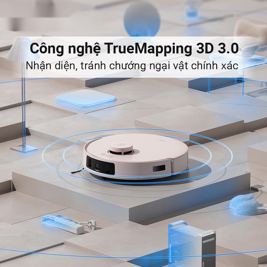 Với công nghệ TrueMapping 3.0, robot hút bụi lau nhà Ecovacs Deebot T30 Omni có thể quét và tạo bản đồ chi tiết cho không gian lên đến 100m² chỉ trong 6 phút. Công nghệ này giúp robot nhận diện cấu trúc nhà ở, từ những góc khuất đến không gian nhiều tầng hay cầu thang. Robot còn tích hợp cảm biến góc nhìn từ dưới lên, đảm bảo không va chạm hoặc rơi khi hoạt động gần mép cầu thang. Tính năng quản lý bản đồ thông minh giúp bạn dễ dàng thiết lập và theo dõi lịch trình dọn dẹp, mang đến sự an tâm tuyệt đối ngay cả khi bạn không có mặt ở nhà.