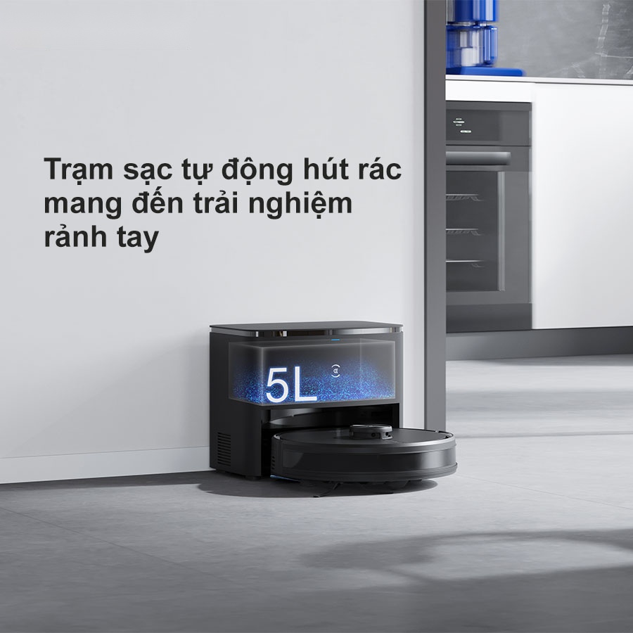 Robot hút bụi lau nhà Ecovacs Y1 Pro Plus được trạm sạc tự động hút rác hiện đại, cho phép làm sạch hộp chứa bụi trên robot trong vòng 12 giây với hiệu suất lên tới 96%. Công nghệ chân không mạnh mẽ giúp xử lý đa dạng các loại mảnh vụn, đảm bảo không để lại cặn bẩn. Túi chứa bụi dung tích lớn 5 lít cho phép lưu trữ tới 150 ngày, giúp người dùng không cần lo lắng về việc đổ bụi thường xuyên, tiết kiệm thời gian và công sức.