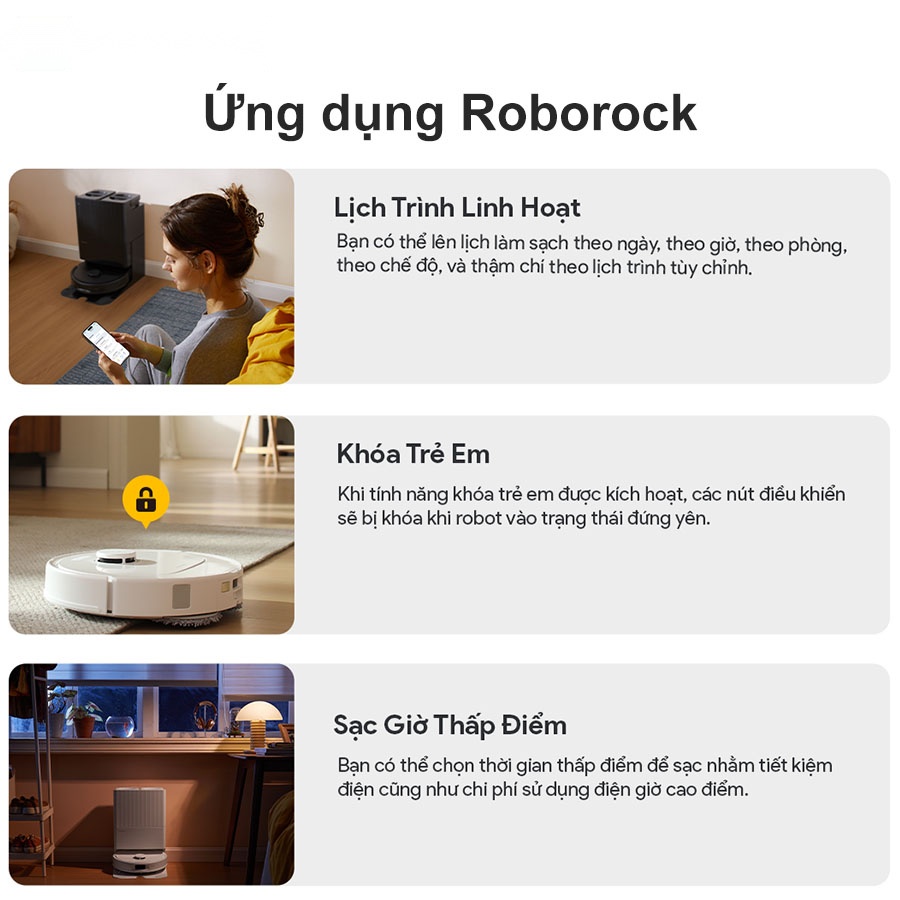 Với việc có thể kết nối và điều khiển từ xa thông qua ứng dụng Roborock, robot Roborock Q Revo S trở thành thành một công cụ quản lý nhà cửa thông minh và hiệu quả, mang lại sự tiện lợi và linh hoạt cho cuộc sống hàng ngày của bạn. Thông qua ứng dụng, bạn có thể: