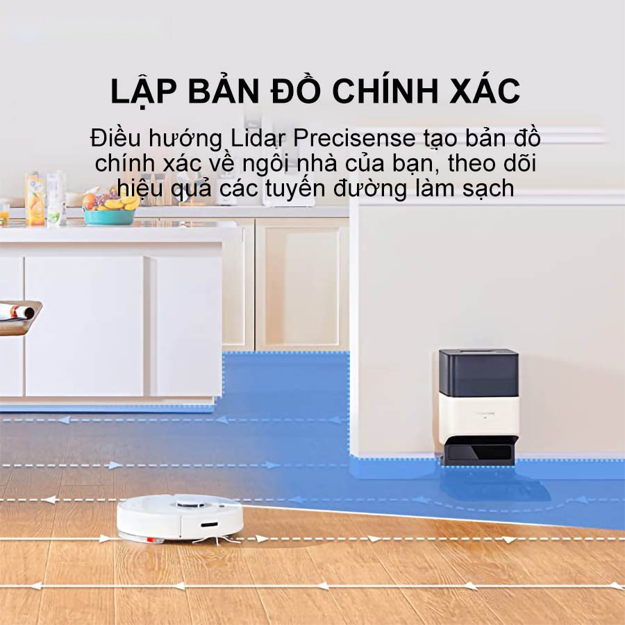 Khi bắt đầu Roborock Q7 Max, sử dụng cảm biến lidar của mình để vẽ lên bản đồ của căn phòng, điều này giống như lên một kế hoạch làm việc cho toàn bộ căn nhà được tạo ra ngay lập tức. Q7 Max dễ dàng phân chia và làm việc lần lượt từng khu vực để tránh không bỏ sót bất kì một khu vực nào cả. Ngoài ra bạn cũng có thể thấy được vị trí robot đang làm việc, khu vực nào đã dọn dẹp và khu vực nào chưa dọn dẹp giúp cho bạn dễ dàng điều hướng cũng như nắm bắt công việc dọn dẹp của Q7 Max.