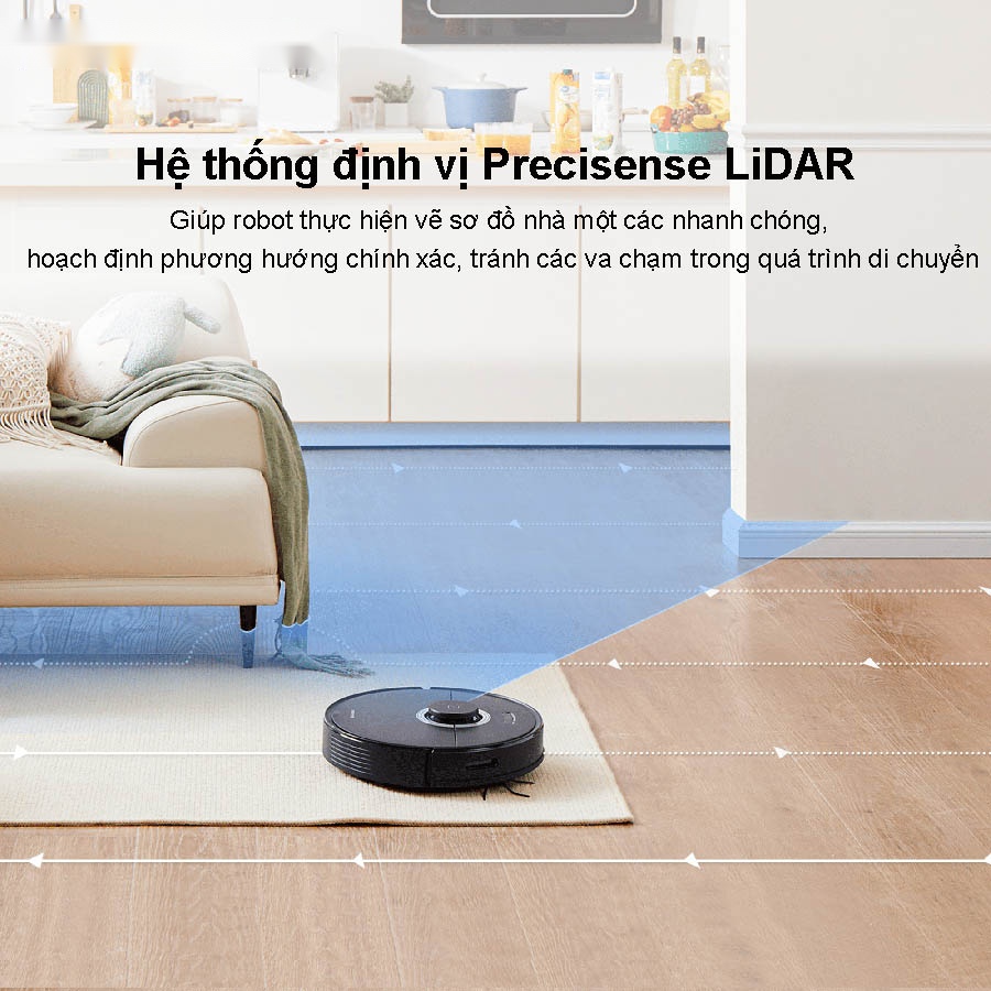 Với cảm biến PreciSense ™ LiDAR, Q7 Max thực hiện công việc dọn dẹp nhà cửa nhanh chóng và lập bản đồ ngôi nhà của bạn lên trên ứng dụng thông minh. Q7 Max lập bản đồ cấp độ chính của sàn nhà sau lần làm sạch đầu tiên khi khởi động.