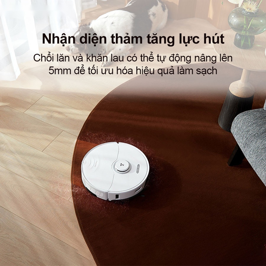 Roborock S8 Pro Ultra được trang bị khả năng nhận diện thảm, chức năng sẽ tự động tăng lực hút lên tối đa ngay khi gặp thảm, giúp robot hút sạch các loại bụi mịn bám sâu và xen kẽ giữa các sợi thảm. Nhờ vậy mà việc vệ sinh thảm của robot hút bụi lau nhà S8 Pro Ultra trở nên hiệu quả hơn. Đồng thời phần khăn lau sẽ được nâng lên để tránh làm ướt thảm, giữ cho thảm luôn được khô ráo và sạch sẽ.