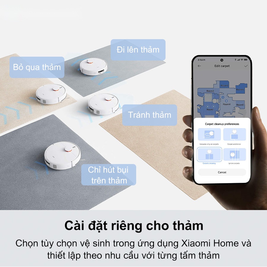 Cài đặt riêng cho thảm làm sạch đúng cách, đúng nhu cầu