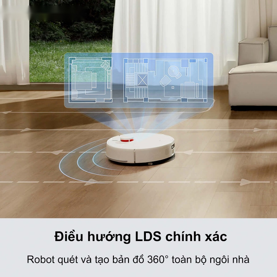 Hệ thống điều hướng laser LDS cho khả năng quét và lập bản đồ 360° toàn bộ không gian sống với độ chính xác cao. Robot nhanh chóng nhận diện môi trường, xây dựng bản đồ chi tiết, giảm thiểu tình trạng bỏ sót góc khuất và hạn chế vệ sinh lặp lại không cần thiết. Người dùng có thể xem bản đồ 2D, 3D và theo dõi đường đi của robot theo thời gian thực trong ứng dụng.