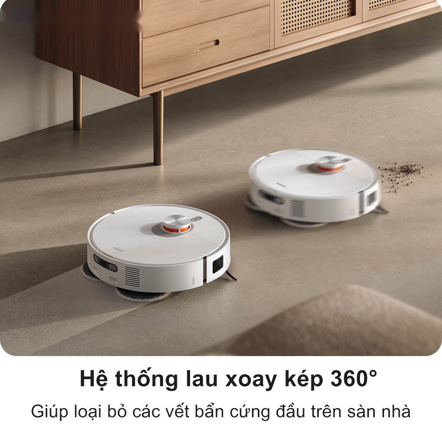 Bên cạnh đó, với khả năng lau xoay với áp lực cao xuống sàn nhà, robot Xiaomi X20 Pro mang lại khả năng lau chùi sạch vượt trội. Nhờ hệ thống cảm biến laser đo đạc khoảng cách một cách chính xác, robot dễ dàng điều chỉnh độ sát của giẻ lau với bề mặt sàn, giúp loại bỏ các vết bẩn cứng đầu mà không bỏ sót.