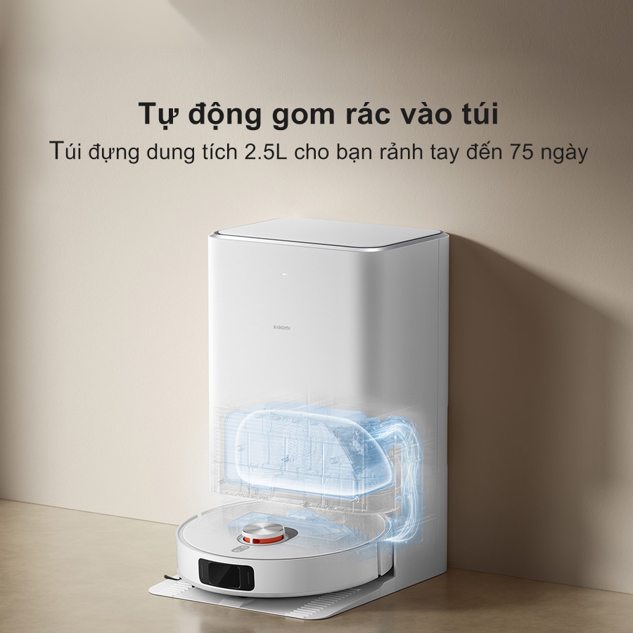 Robot hút bụi lau nhà Xiaomi X20 Pro đi kèm với trạm sạc đa năng hiện đại, giúp bạn hoàn toàn rảnh tay trong việc vệ sinh nhà cửa. Với chức năng tự động giặt sạch và sấy khô giẻ lau bằng khí nóng, giẻ lau của robot sẽ luôn được sạch sẽ, khô ráo, không còn lo nấm mốc hay mùi khó chịu. Hệ thống tự động gom bụi và rác thải với túi đựng dung tích lên tới 2.5L, bạn chỉ cần để ý vứt túi rác sau khoảng 75 ngày sử dụng, giúp tiết kiệm thời gian và công sức.