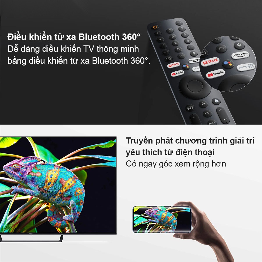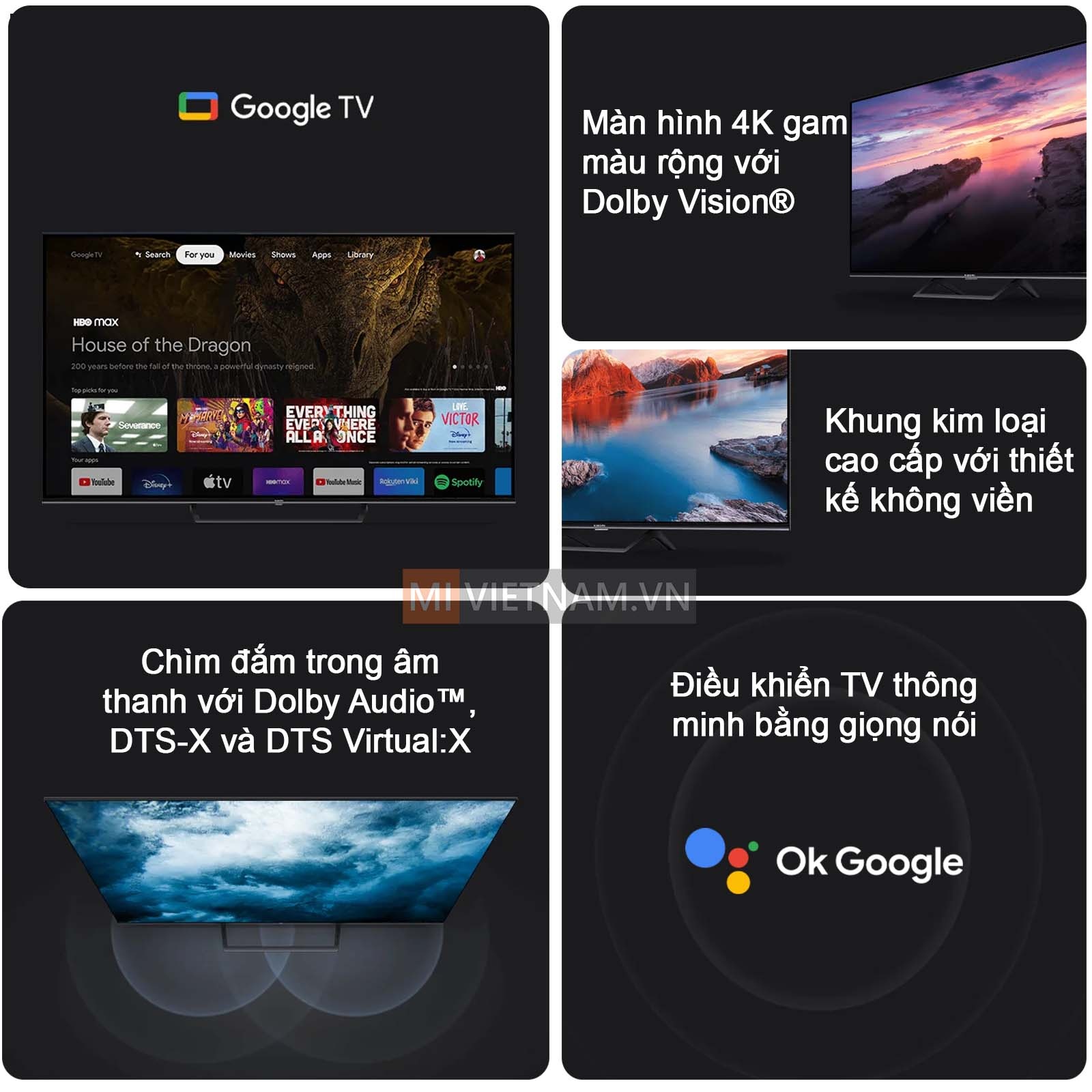 - Google TV™ với kho ứng dụng phong phú, điều khiển bằng giọng nói dễ dàng